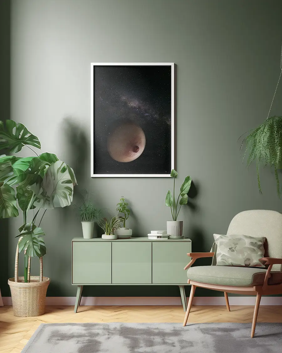 Ett abstrakt konstverk med rymdtema. Postern passar lika bra i liggande som stående format. Eller till och med upp och ner.