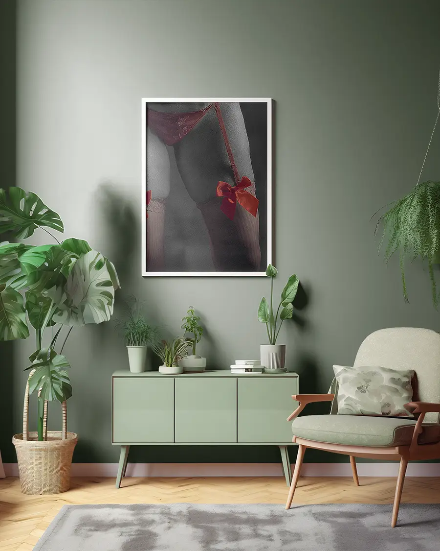 Röda Spetsstrumpor Med Rosett – Poster – Fine Art Nude